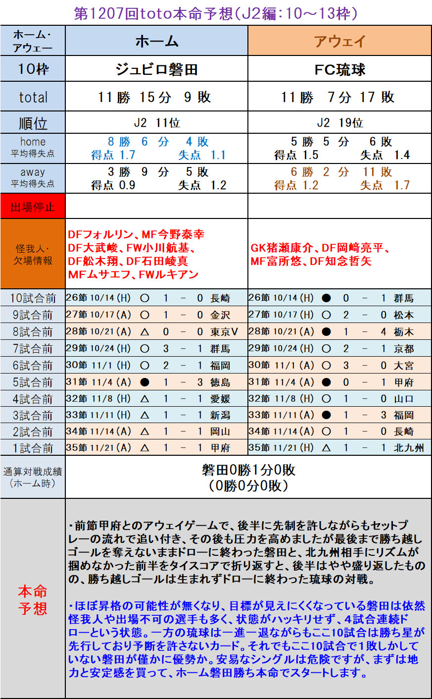 第1212回toto本命予想 j2編 10 13枠 toto予想 僕の妄想totolife